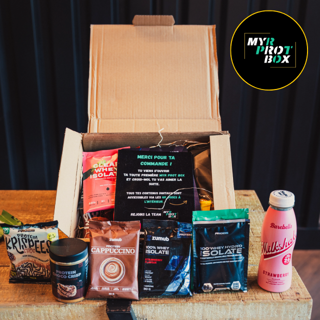 Avec MYR PROT BOX, découvrez chaque mois une sélection de produits protéinés variés, gourmands et accessibles, pensée pour les sportifs qui veulent rester réguliers sans exploser leur budget.